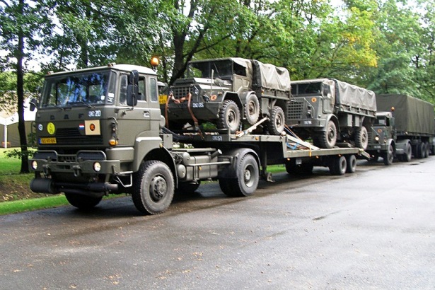 Toen Nederland zelf nog tanks had, werden die vaak vervoerd op een oplegger met trekker ervoor, zoals deze DAF uit de jaren 1980. Foto: Henk Boons
