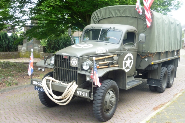 Militaire voertuigen, die in 1944-45 door de Geallieerden massaal werden gebruikt in de oorlog tegen Duitsland, worden nu voor vreedzamer doeleinden ingezet. Foto: Evert Vos
