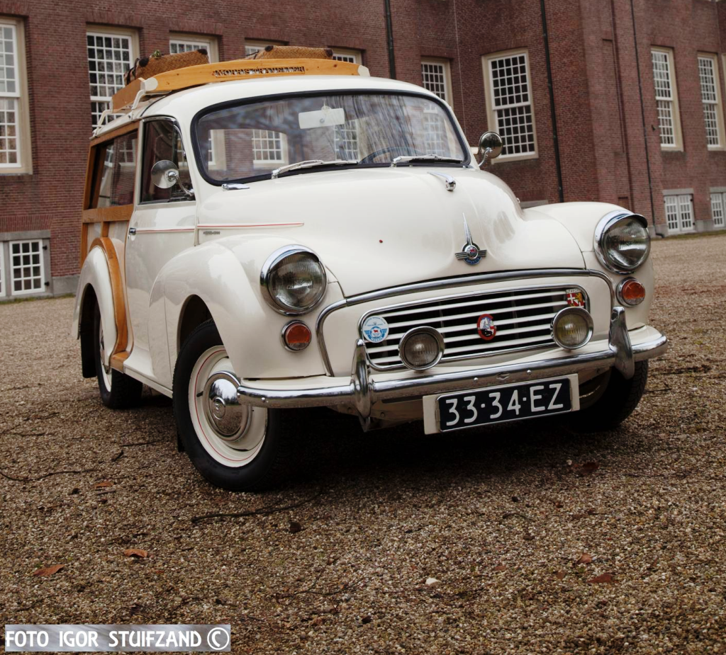 Een Morris Minor Traveler (herkenbaar aan de karakteristieke houten stijlen achter) uit 1967. De Morris Minor voor Nederland werd ook hier geassambleerd door de importeur Molenaar; tussen 1949 en 1953 vond dat plaats in een fabrieksruimte die gehuurd werd van de carrosseriefabriek Jan Jongerius. Bij de afbraak van de voormalige fabriekshallen in 2016 maakte de Morris Minor Club Nederland hierover een informatief filmpje dat op Youtube te zien is. Ook werd op passende wijze afscheid genomen van de fabriek; dat afscheid is eveneens op Youtube te zien.
